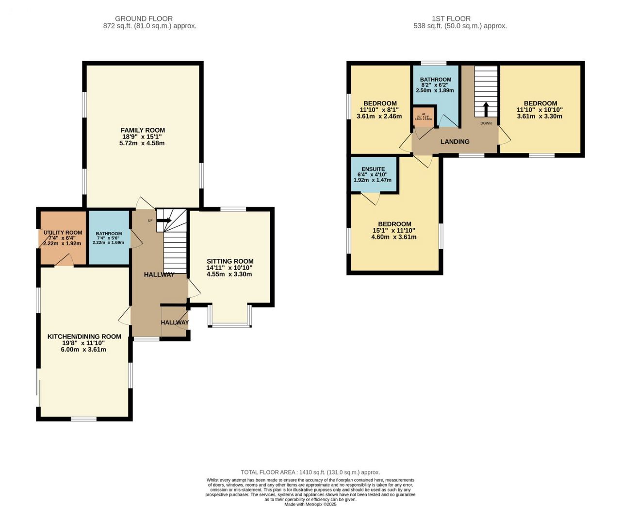 The home extends to a spacious 1,410 sq. ft. and boasts a wraparound lawn and large rear patio, perfect for outdoor dining and recreation. The exterior has been exceptionally well maintained, with mature landscaping and ample room for children to play or for entertaining guests during warmer months.