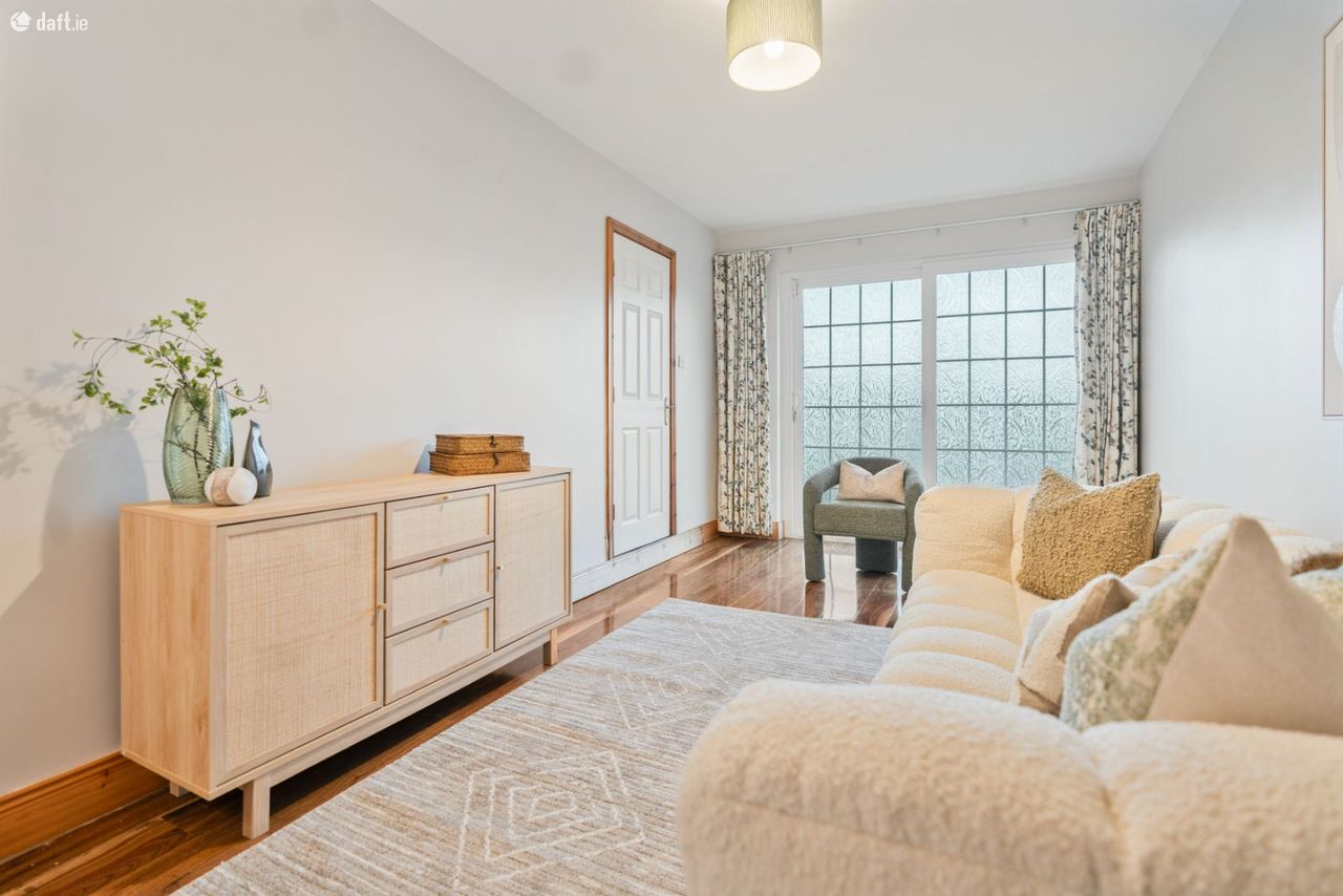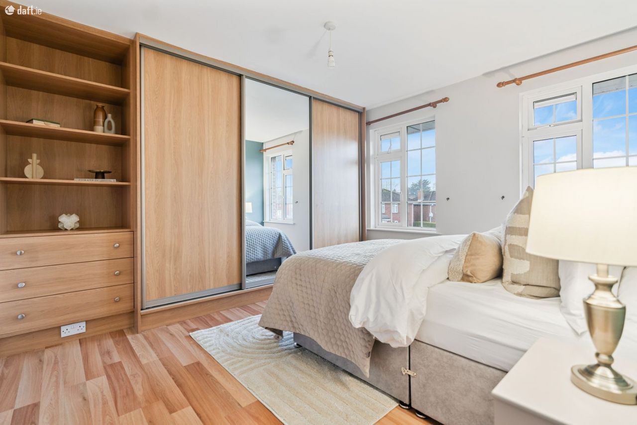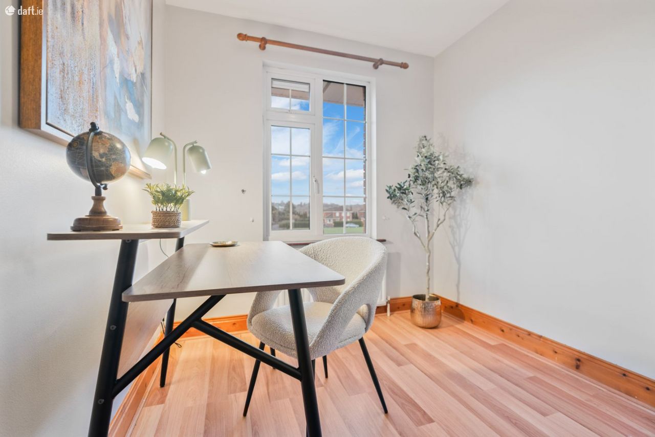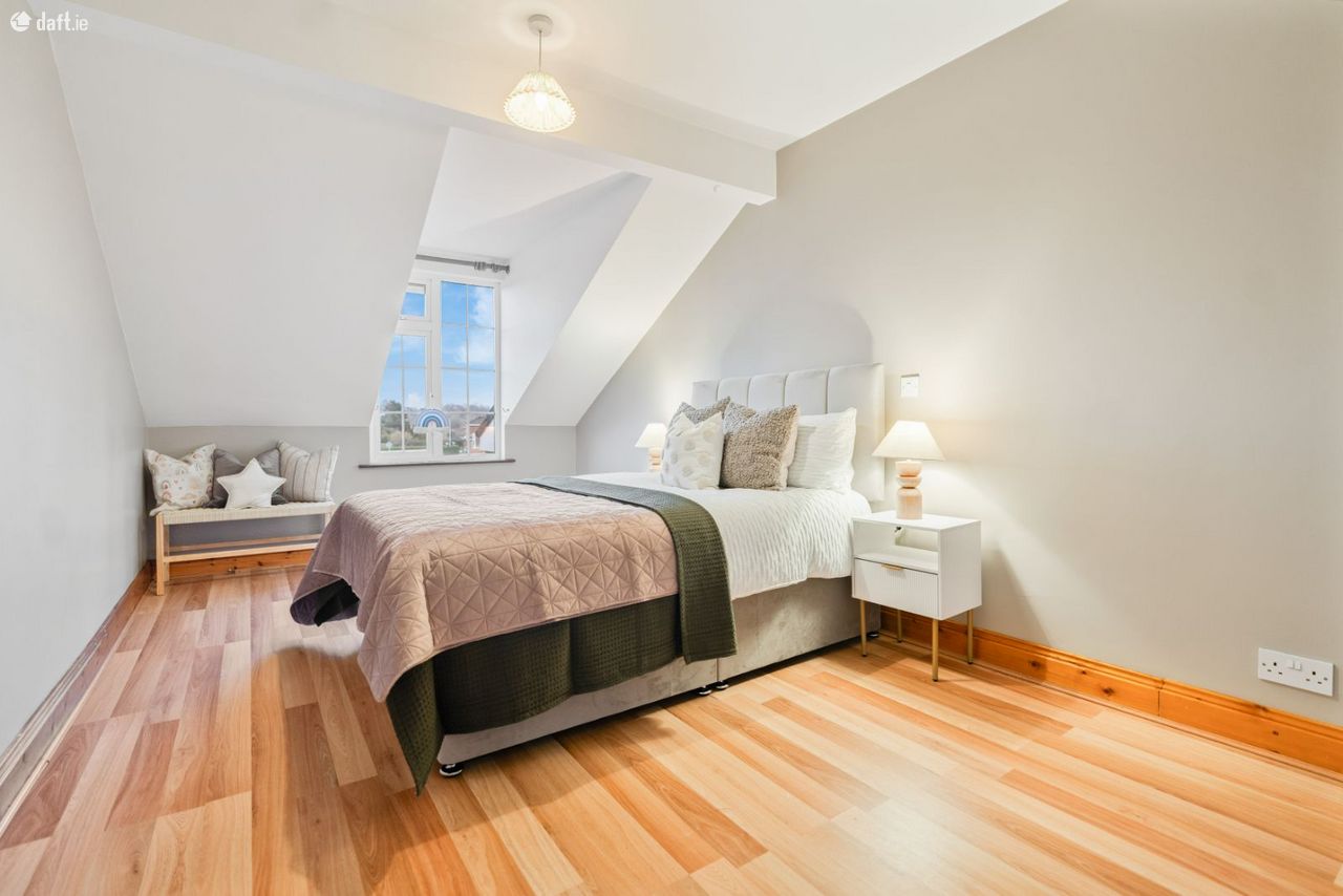Upstairs, there are four generously proportioned double bedrooms, along with a fifth smaller bedroom ideal for use as a home office or study. The master bedroom features a full wall of sliding wardrobes and an en-suite shower room. A hot press and a well-appointed family bathroom, complete with bath and electric shower, complete the first-floor accommodation. The rear-facing rooms benefit from sunshine from early morning through to late afternoon, while the front rooms enjoy late afternoon and evening sun.