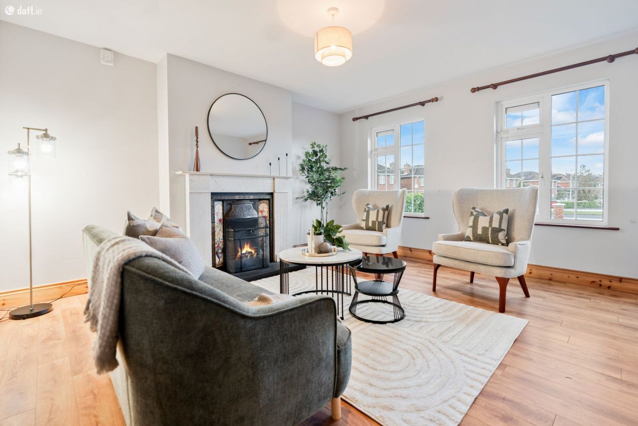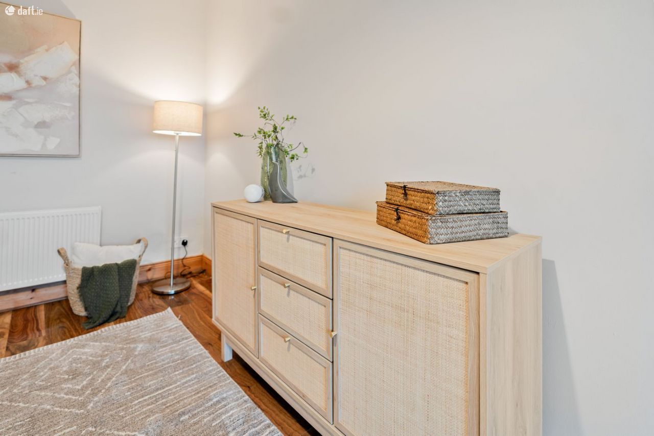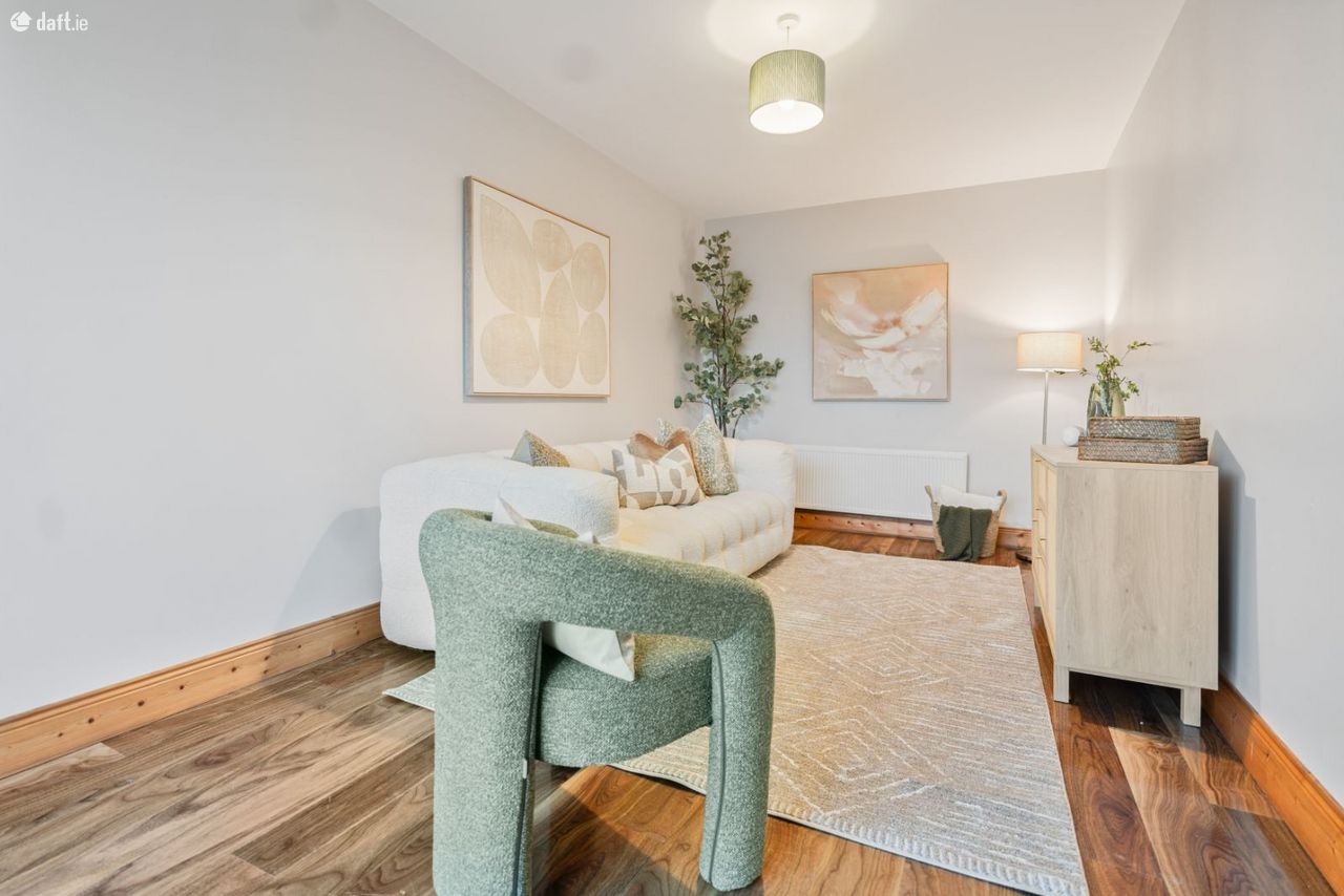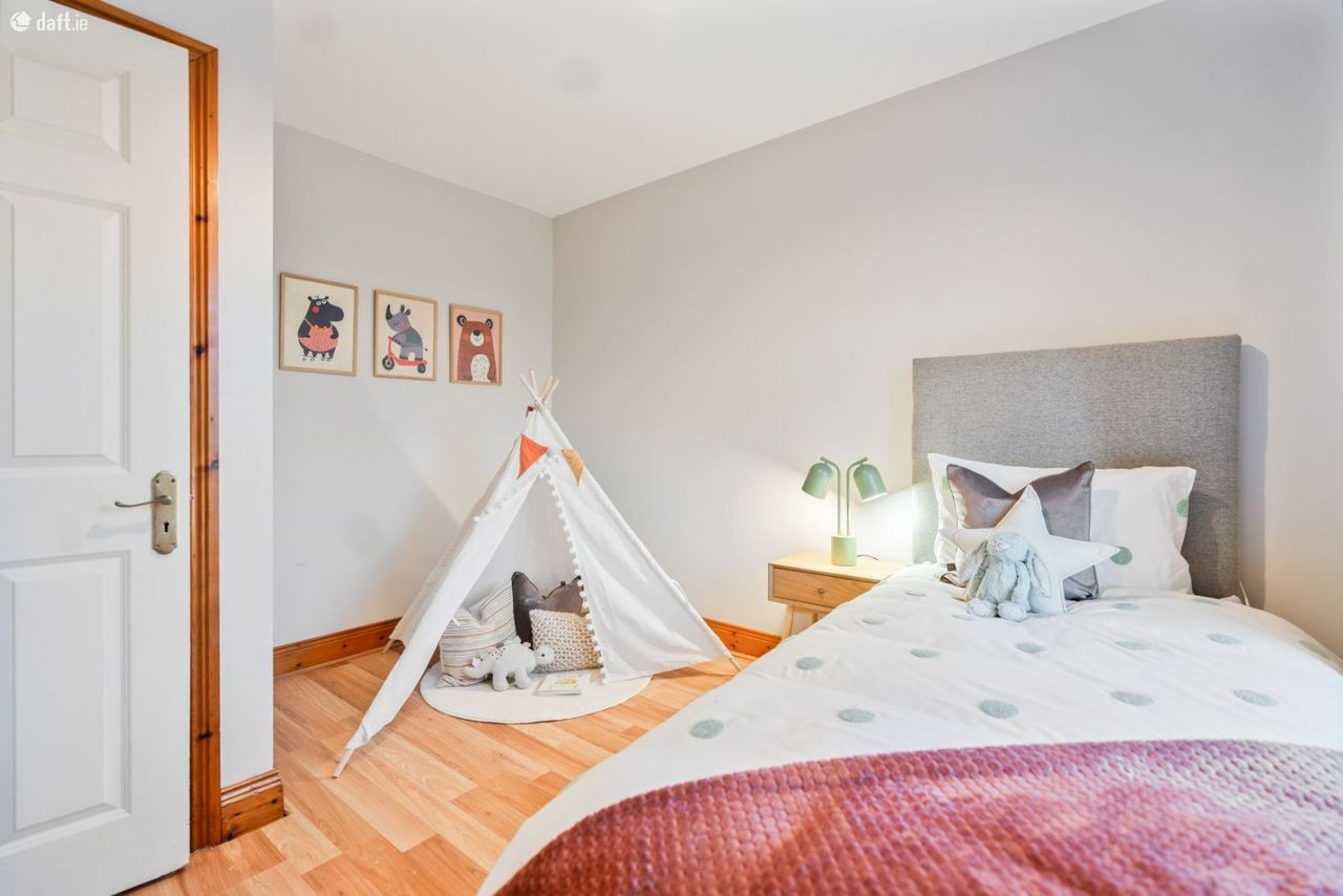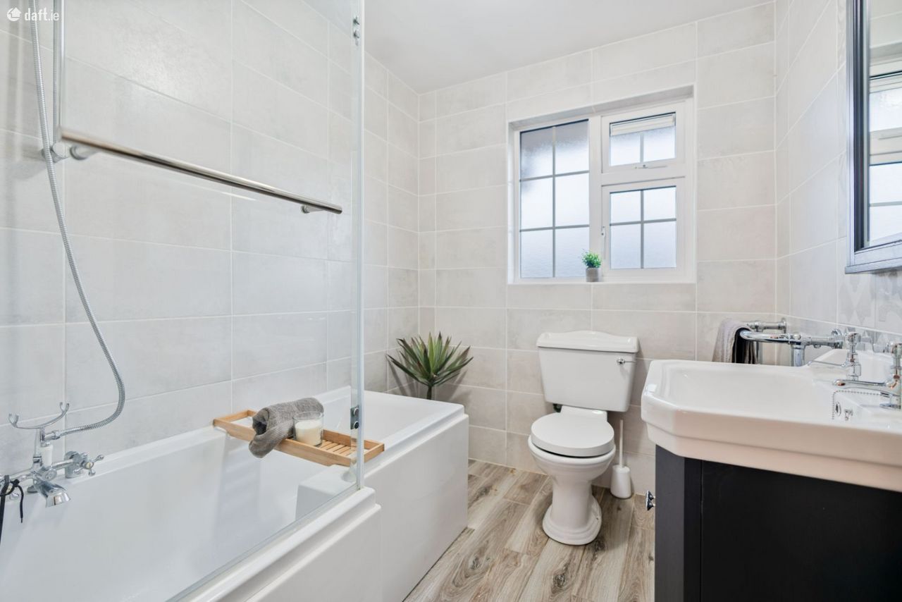 Upstairs, there are four generously proportioned double bedrooms, along with a fifth smaller bedroom ideal for use as a home office or study. The master bedroom features a full wall of sliding wardrobes and an en-suite shower room. A hot press and a well-appointed family bathroom, complete with bath and electric shower, complete the first-floor accommodation. The rear-facing rooms benefit from sunshine from early morning through to late afternoon, while the front rooms enjoy late afternoon and evening sun.