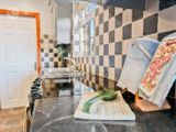 To either side of the entrance hall are two spacious reception rooms. The main living room features a marble fireplace and overlooks the expansive green to the front, while the second reception room is highly versatile and suitable for use as an additional living room, home office, or playroom. To the rear, the bright and welcoming kitchen enjoys natural light throughout the day and is fitted with solid cabinetry, contrasting worktops, and tiled flooring, which continues into the adjoining utility room. The utility is fully fitted with built-in units, offers ample storage, and is plumbed for a washing machine. A ground floor bathroom with shower is conveniently located off the utility.