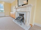 A generously proportioned living space featuring dual-aspect windows that flood the room with natural light. Finished with plush carpet flooring and an ornate marble and wood fireplace, perfect for cosy evenings.